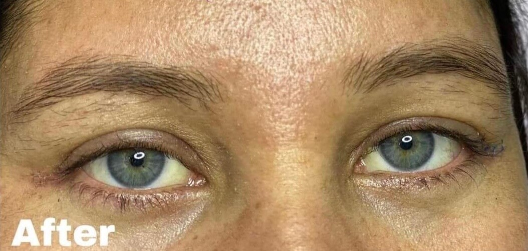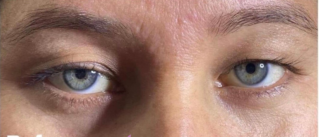 Before and after images following eyelid surgery in an international patient.Shows improved eyelid symmetry and a more rested, natural eye appearance.