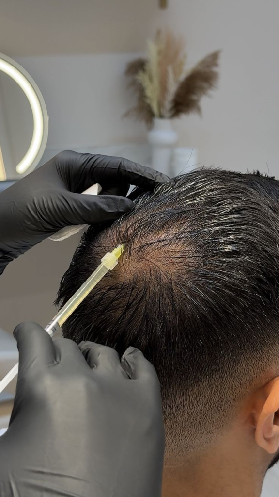 PRP (Platelet-Rich Plasma) Hair Treatment is a non-surgical procedure that uses your own blood to stimulate hair growth. Platelets, rich in growth factors, are extracted and injected into the scalp to activate dormant hair follicles and improve hair density.